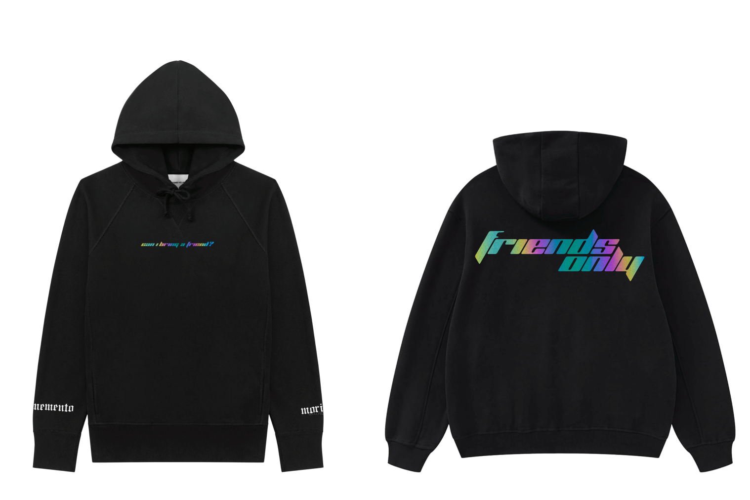 iridescent reflective front & back with embroidered 'memento mori' on sleeves. made in canada 🇨🇦 with highest quality Redwood Classics 16oz Hoodie (retails for $99).